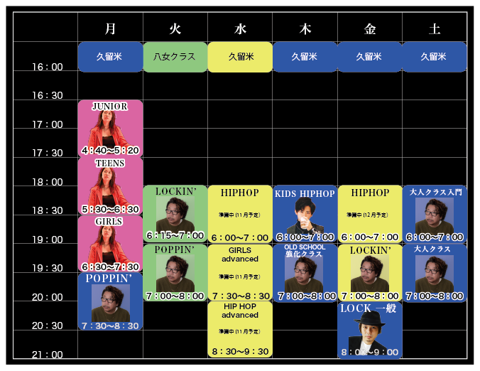 STUDIOFACE タイムテーブル 【 久留米校 】